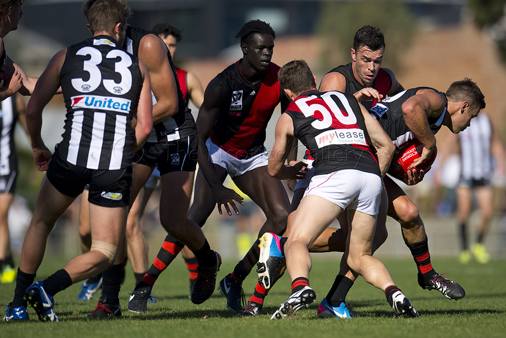 The Collingwood defence was constantly under pressure as the Bombers ran rampant in the last with another seven goals. Pies defender Jackson Viola tried hard to stem the flow and Jesse White battled all day around the ground. Ben Crocker and Matthew Goodyear provided some positives for the Pies in what was a disappointing display from the home side.