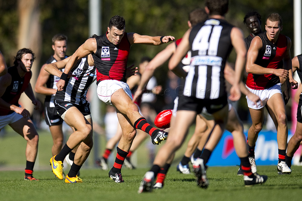 He booted Collingwood's first two goals but it was all the Bombers after that as they took complete control running away with an emphatic 85-point victory 20.13.133 to 7.6.48.Former Fremantle Docker, Ryan Crowley, was in everything for the Bombers booting a game-high four goals and gathering 30 disposals while another top-up player, ex-Hawk, Jonathan Simpkin, had 32 possessions and kicked two goals.