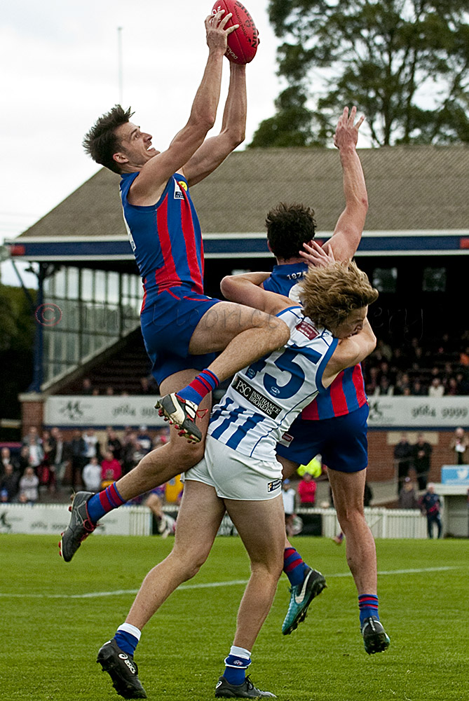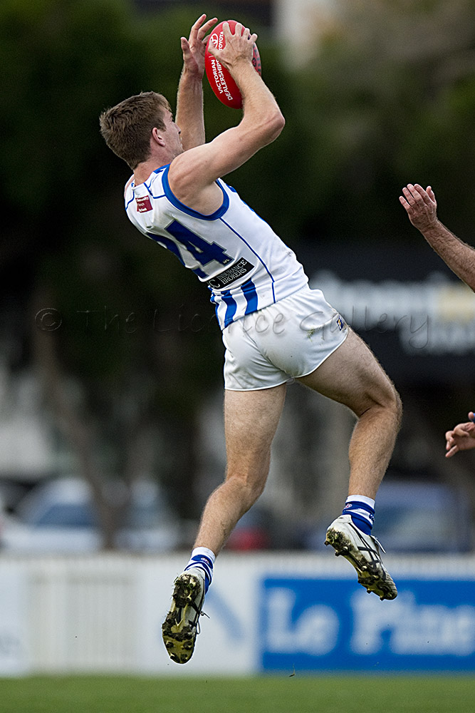 Lucas Cook takes another mark in defence for the Borough during the tense final quarter at North Port Oval.