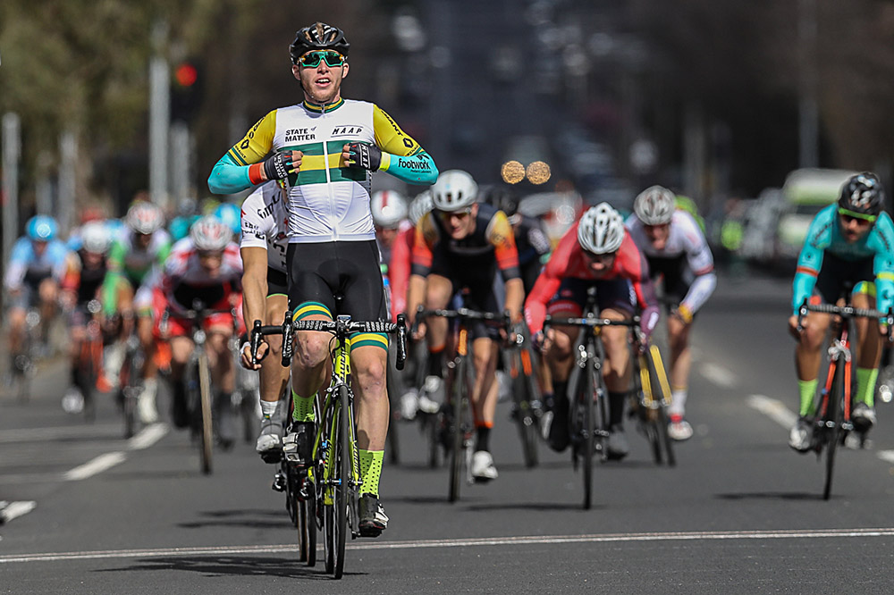 Earlier on the opening day, current National Criterium jersey wearer, Jesse Kerrison, from Queensland, riding for the State of the Matter/MAAP team, took out the 36km criterium around Vansittart Park in Mount Gambier’s CBD. He defeated three-time Commonwealth Games Gold Medallist, Scott Sunderland, from Western Australia with the Inform Racing Team with Shaw (Avanti Isowhey Sports) in third place.