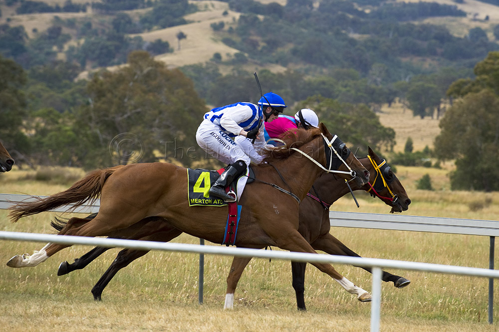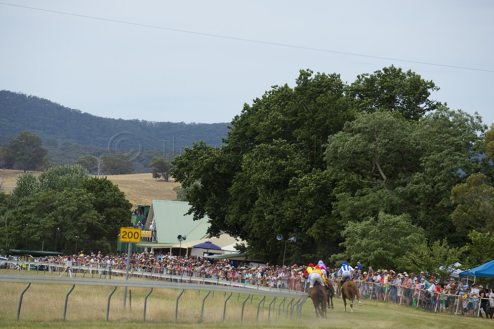 As the Strathbogie Ranges bathed in the sunshine the jockeys in the first made their way to the barriers at the 1100. The PA system bellowed the second from Doomben and children scurried in-and-out of rare lawn space.