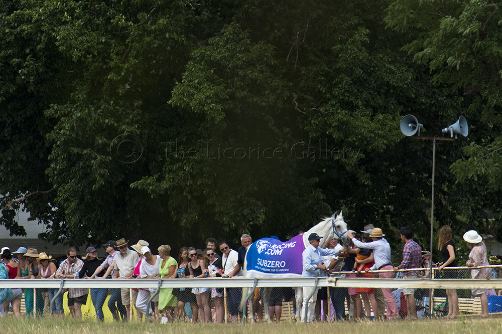 Seymour jockey Reece Goodwin won the next two races on Eclipsable and Leixlip Lad respectively. 1992 Melbourne Cup winner, Subzero, was paraded up-and-down the home straight before the Cup, posing for photos as children reached over the fence to pat the grey champ affectionately known as ‘Subbie’.