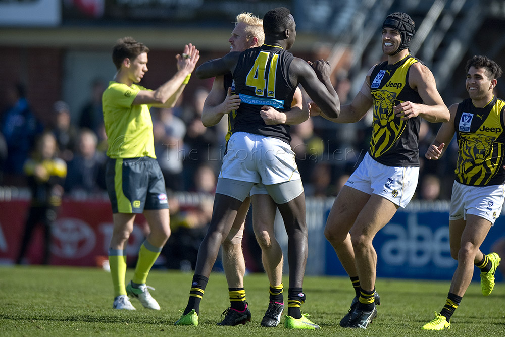 The Tigers goals were shared around with fourteen goalkickers in an even team performance, Callum Moore kicking a game-high four goals and Ben Lennon with two were the only multiples. The Tigers fielded nineteen AFL listed players and are riding the yellow and black wave, mirroring their senior AFL teammates, who are hoping to make their way into the AFL Grand Final this Saturday.