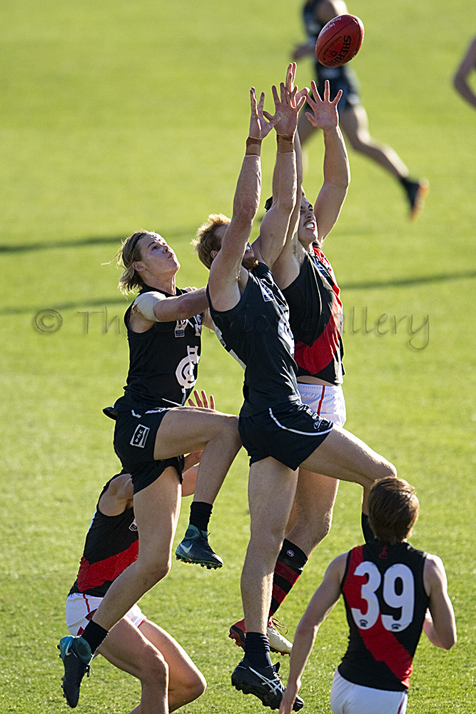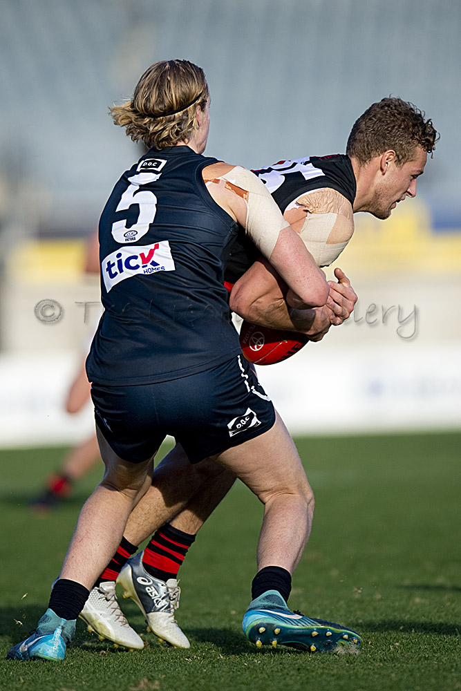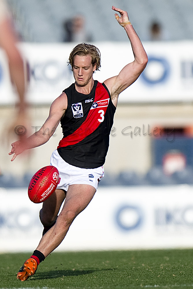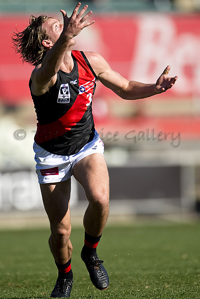 Mitch Brown (above) was prominent up forward with four goals and twenty disposals while former Coburg small forward, Daniel Younan booted three. Midfielder Darcy Parish racked up 29 possessions to figure in the Bombers best and he was well supported by Aaron Francis (22) down back, Aaron Heppel (25) who kicked and important goal late in the third quarter and Ben McNeice with 22 disposals around the middle.