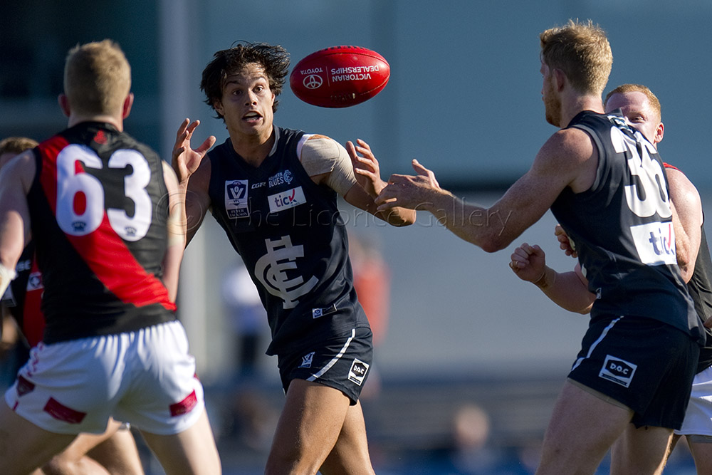 Essendon have shot into the VFL top four after an impressive 73-point win over the Northern Blues in round eight at IKON Park. The Blues were within reach at the last change trailing by 20 points but the Bombers turned on the after-burners in the last with eight goals to just a single behind from the home side. The final score Essendon 19.14 128 to the Northern Blues 8.7.55.