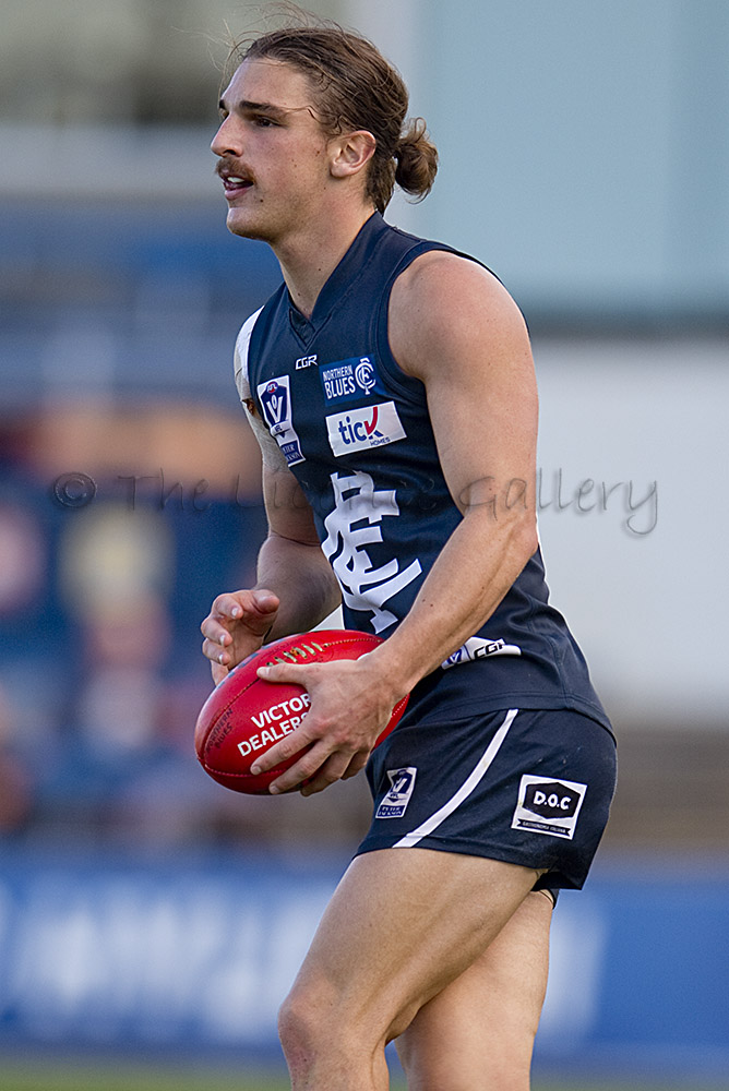 Jack Silvagni of the Northern Blues has eyes only for the sherrin.