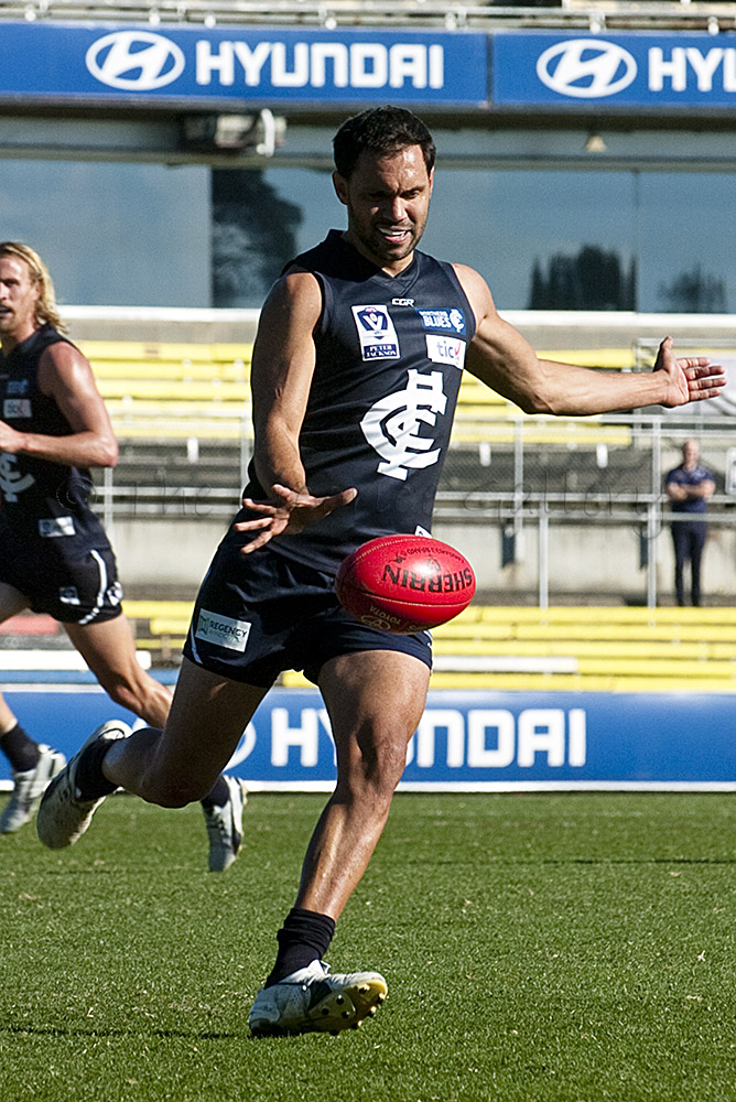 Former Eagle and Bulldog, Josh Hill, in action for the Northern Blues in the clash against Essendon.