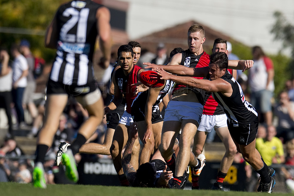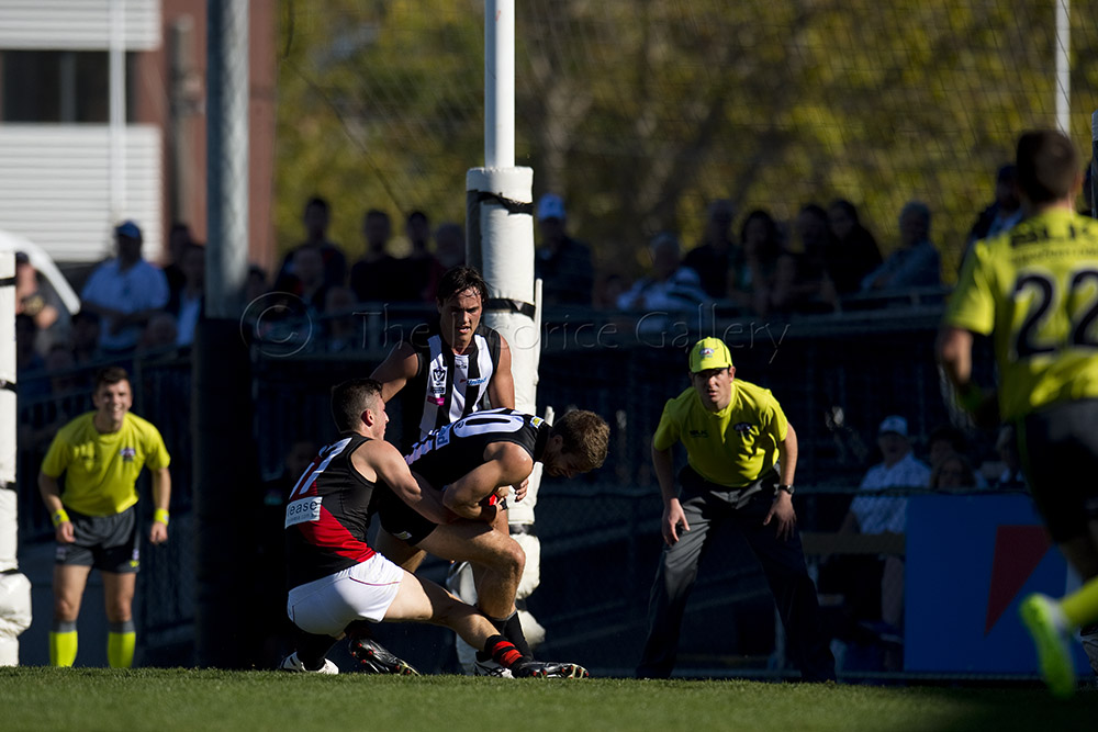 Essendon have trounced Collingwood in an impressive display in round three of Peter Jackson VFL before a good crowd at Victoria Park in their Anzac Day eve clash. Many had ventured to the Magpies spiritual home to catch a glimpse of out-of favour forward Travis Cloke (above) who was playing his ninth VFL game spanning a 12-year AFL career.