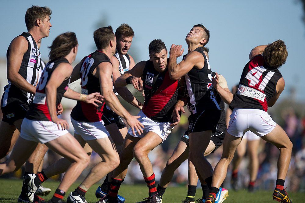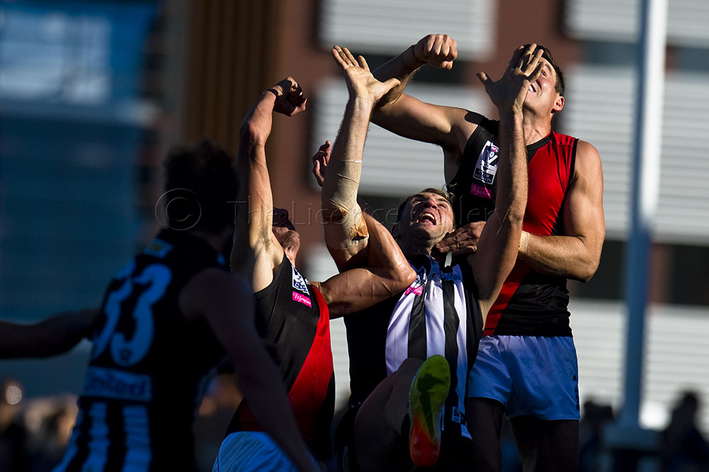 He booted Collingwood's first two goals but it was all the Bombers after that as they took complete control running away with an emphatic 85-point victory 20.13.133 to 7.6.48.Former Fremantle Docker, Ryan Crowley, was in everything for the Bombers booting a game-high four goals and gathering 30 disposals while another top-up player, ex-Hawk, Jonathan Simpkin, had 32 possessions and kicked two goals.