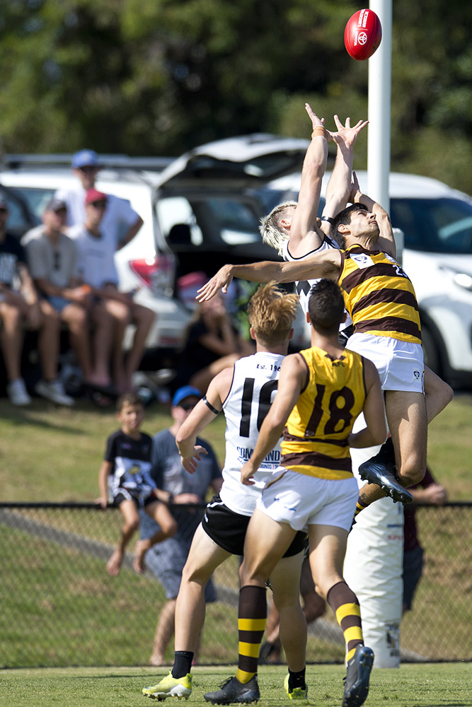 Better players for Southport included Gowers with is five goals, Lukas Webb again providing drive from around the packs, Dawson and Fraser Thurlow won the rucking duels. For Aspley, Hammelmann with his six goals, Thomas Baulch again showed promise kicking two goals and defender Jacob Allison tried hard repelling many Shark attacks.