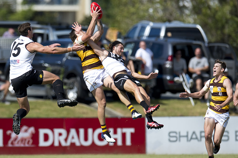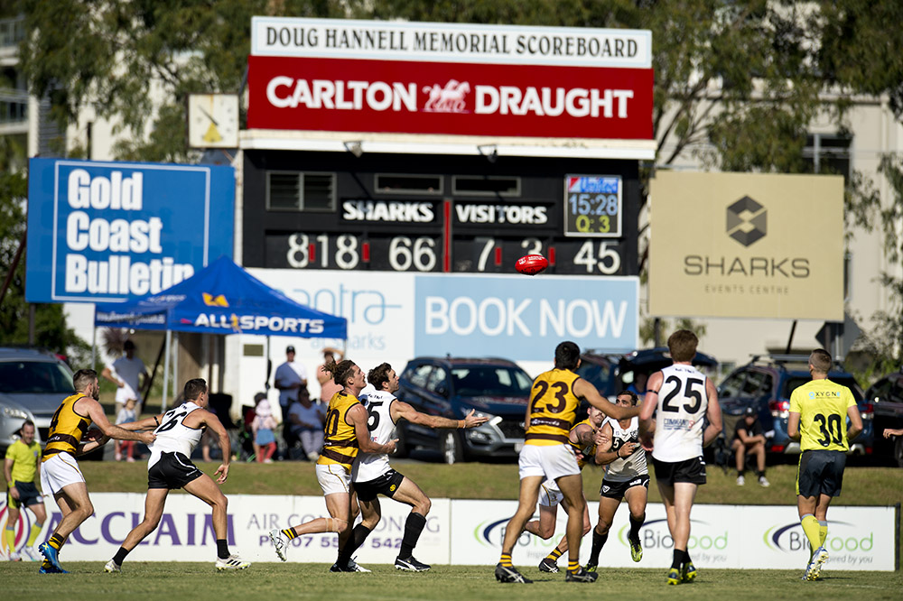 Southport have made it two from two in their inaugural year of the revamped VFL competition by defeating Aspley at Fankhauser Reserve on the Gold Coast. The home side’s inaccuracy at goal looked likely to prove costly midway through the final term when the Hornets got to within five points. However the Sharks steadied and went onto win 14.25.109 to 15.5.95.
