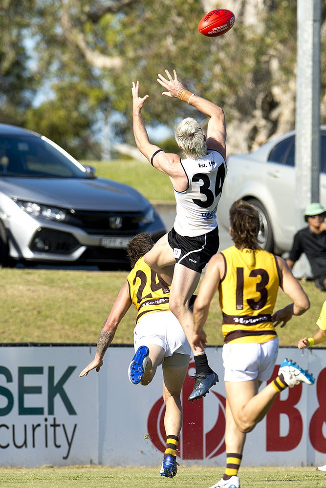Conditions were near perfect for football at Southport and both sides were keen to keep their momentum rolling after round one victories in their debut games in the competition. It was the travelling Hornets who were first to get going with two quick goals from Hammelmann. Southport responded however and took a five point lead into the first change.